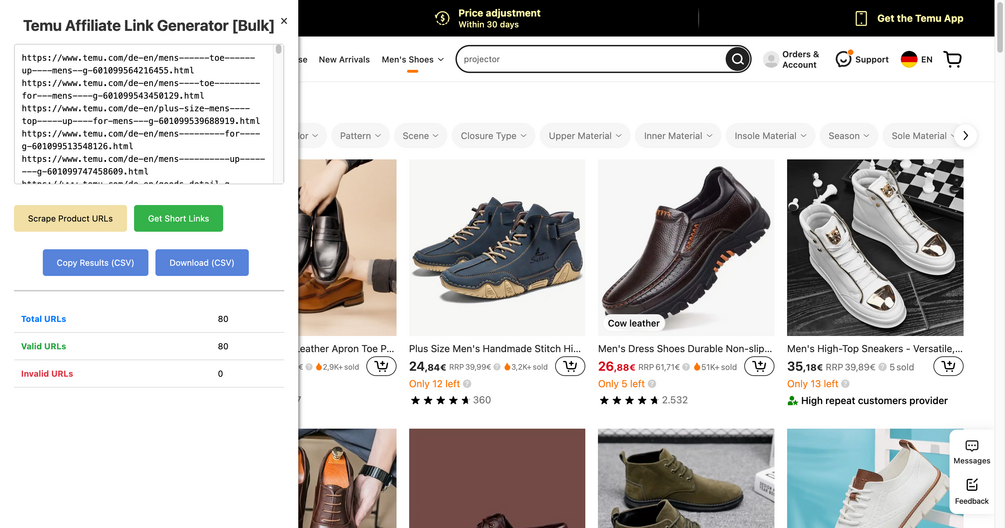 Temu Affiliate Link Generator [Bulk]